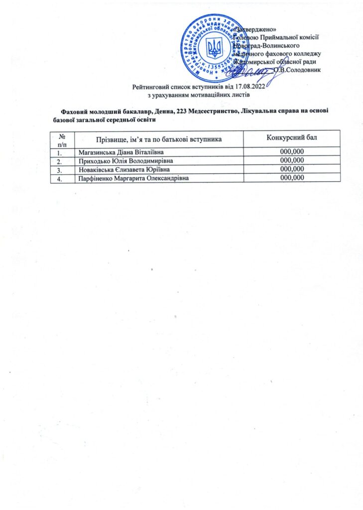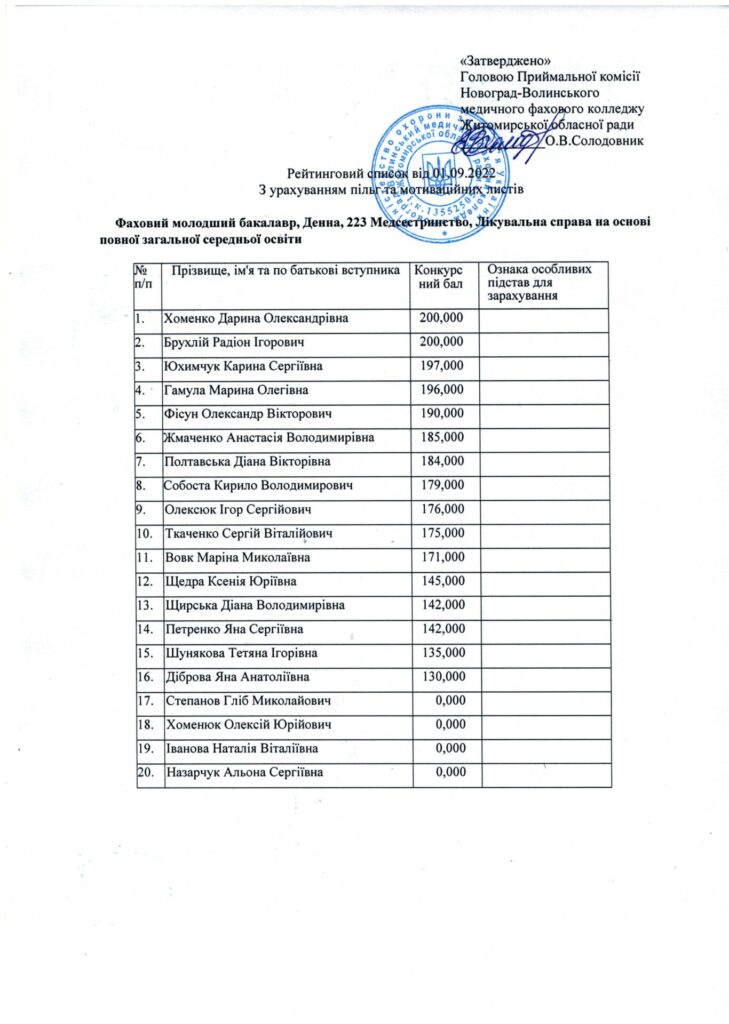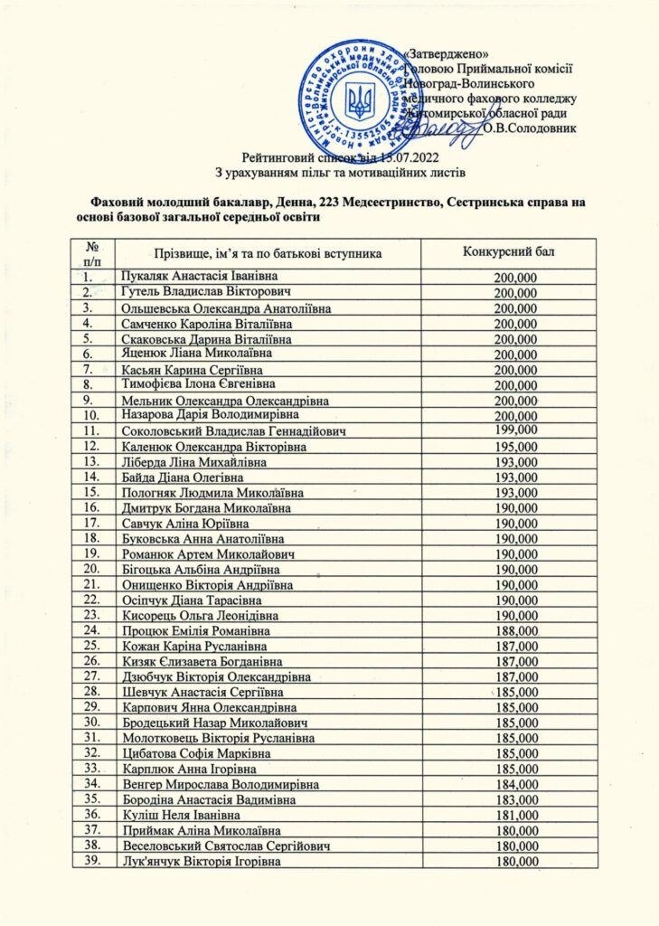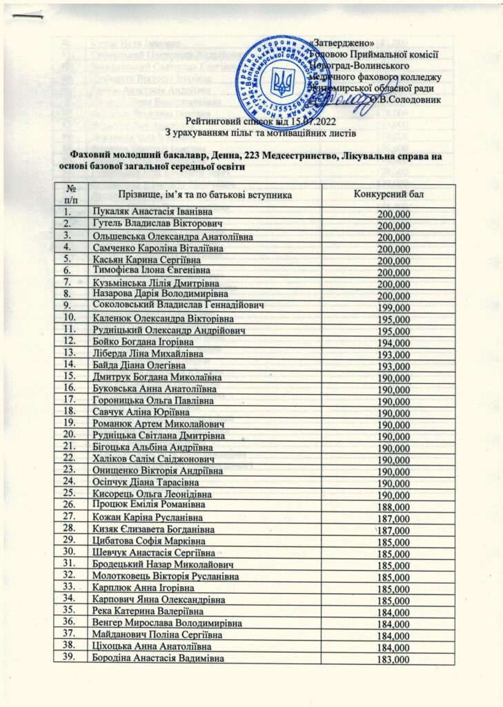Рейтинг вступників з урахуванням пільг та мотиваційних листів