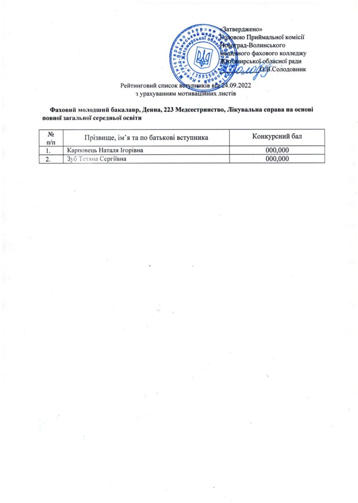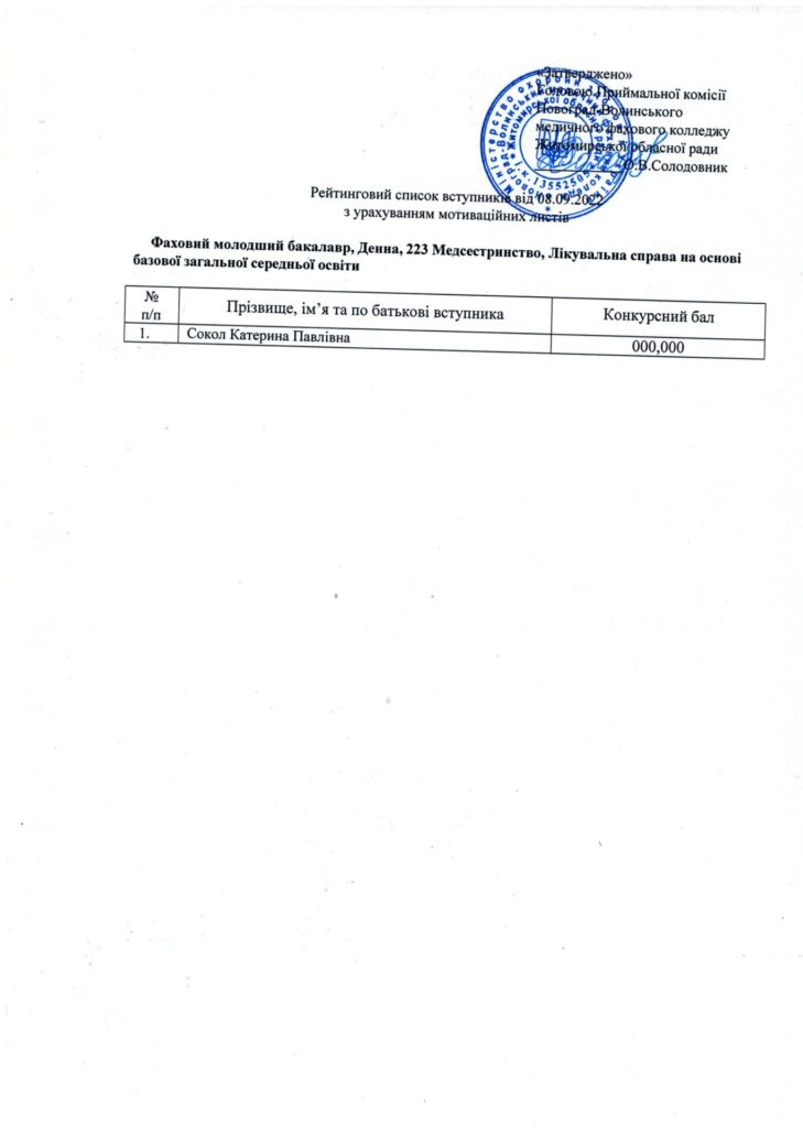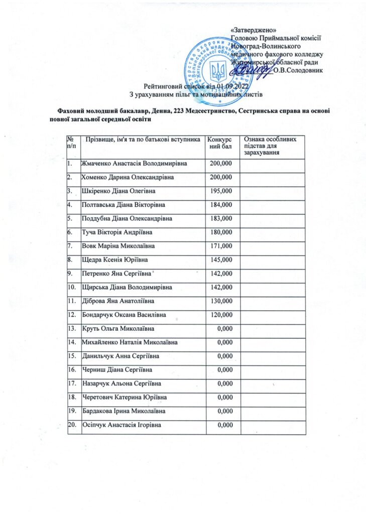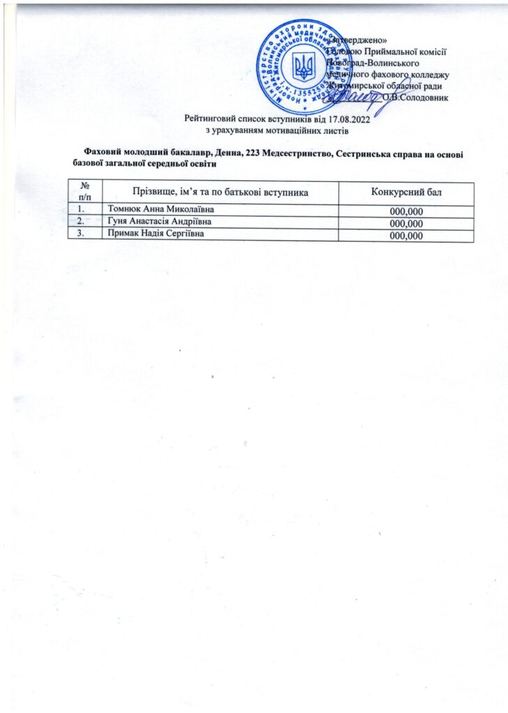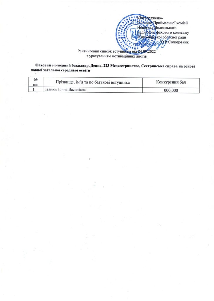 Рейтинг вступників з урахуванням пільг та мотиваційних листів