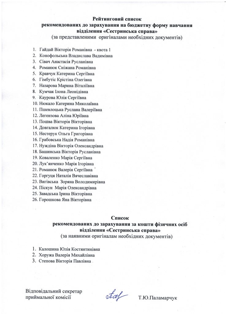 Рейтингові списки “Сестринська справа” “Лікувальна справа” 22.07.2020 Якщо ви знайшли помилку, будь ласка, виділіть фрагмент тексту та натисніть Ctrl+Enter. Share