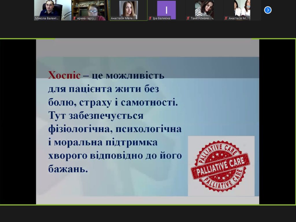 23 грудня 2020 року відбулося дистанційне (платформа Zoom) засідання круглого столу на тему: «Роль середнього медичного працівника у догляді за паліативними пацієнтами.»