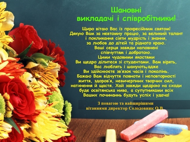 Прийміть щирі вітання з Днем працівника освіти! 30.09.2021 Якщо ви знайшли помилку, будь ласка, виділіть фрагмент тексту та натисніть Ctrl+Enter. Share