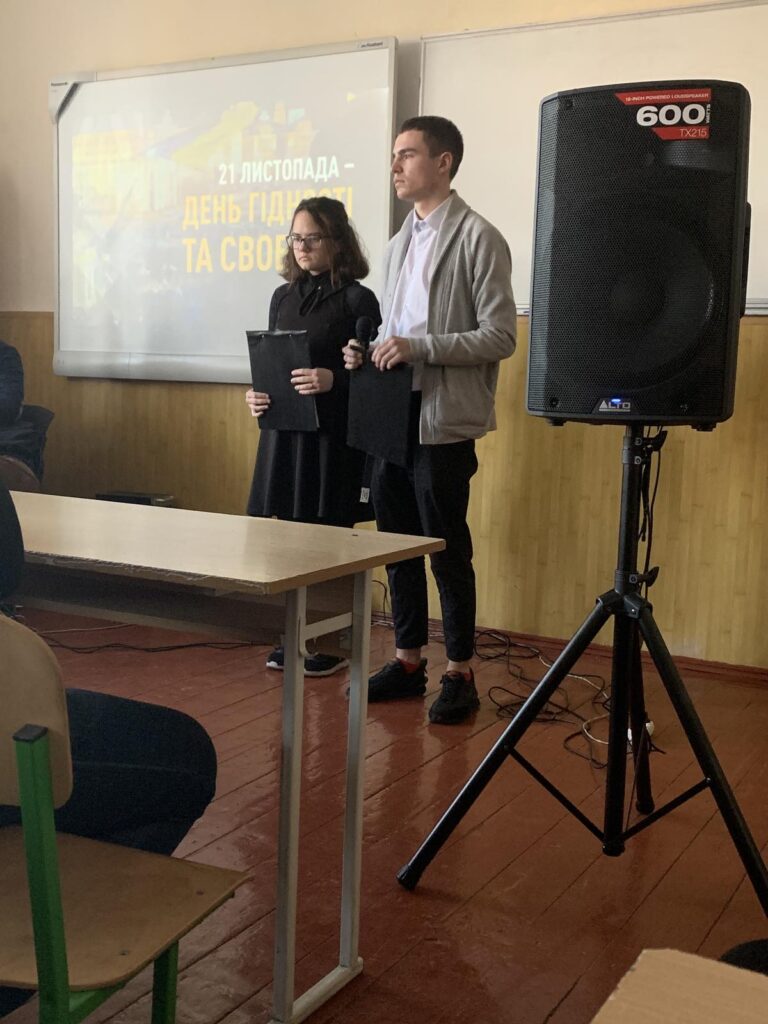 З метою вшанування пам’яті Героїв Небесної Сотні, прищеплення любові до Батьківщини, виховання національно-патріотичної свідомості, збереження та донесення до студентів об’єктивної інформації про доленосні події в Україні початку ХХІ століття, розвитку бажання стати гідними громадянами День Гідності та Свободи в коледжі відзначили заходами, що нагадали про події, які назавжди залишились в пам’яті українців.