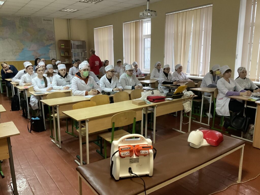 Валерій Михайлович доцільно використав наочні технічні засоби: автоматичний зовнішній дефібрилятор та біфазний дефібрилятор «Філіпс», доречно продемонстрував роботу цих апаратів на фантомах.