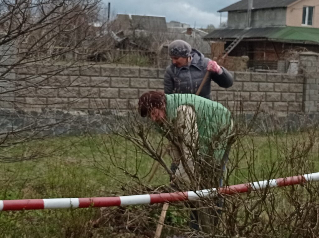 У рамках суботника з прибирання території навколо гуртожитку, організованого директором Оленою Володимрівною Солодовник, до роботи долучилася група переселенців з Маріуполя! Готуємось до перемоги!