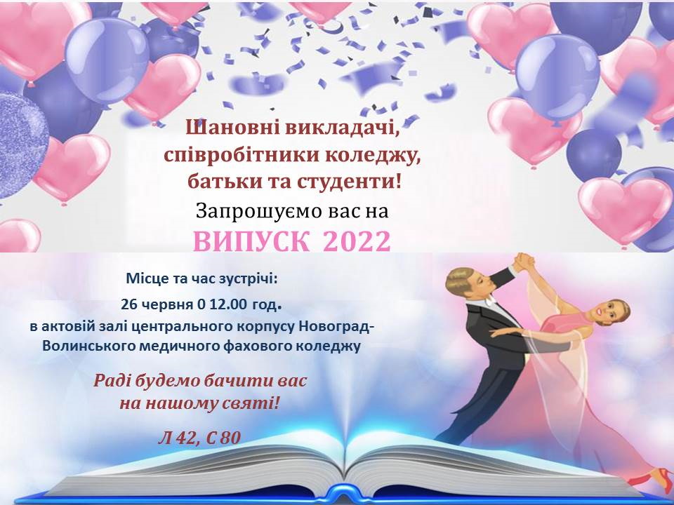 Запрошення з нагоди випуску 2022 23.06.2022 Якщо ви знайшли помилку, будь ласка, виділіть фрагмент тексту та натисніть Ctrl+Enter. Share