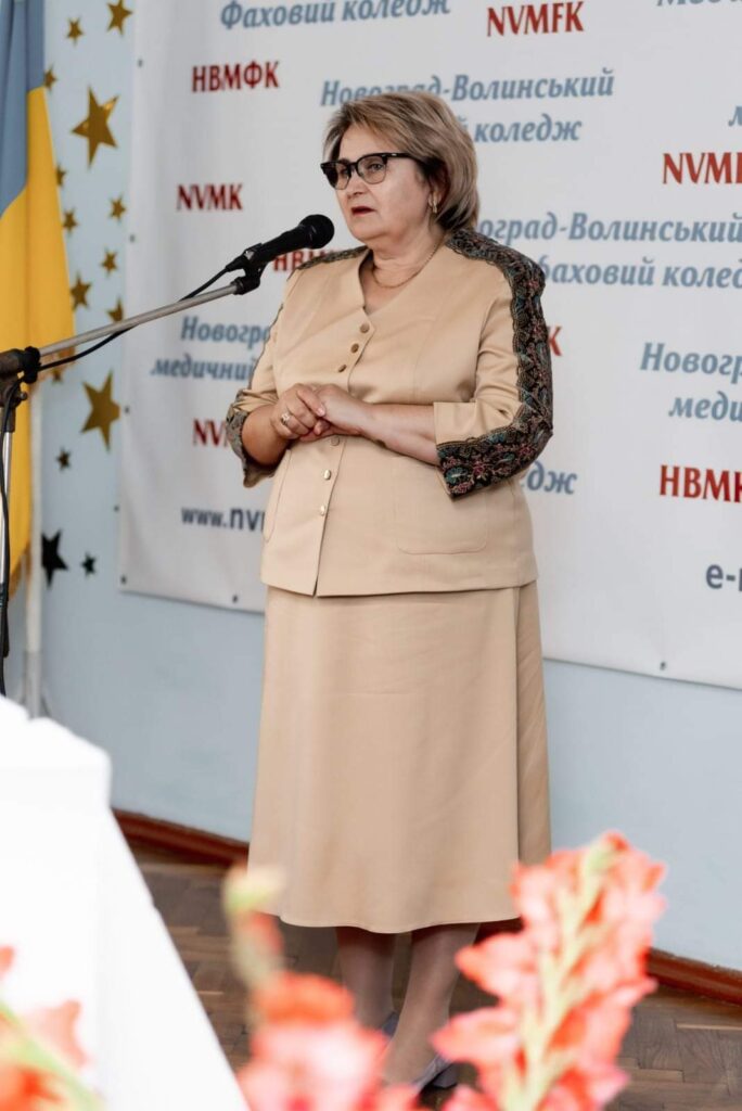 Першокурсників благословила на успішне навчання директор медичного коледжу Олена Солодовник, яка відзначила, що Новоград-Волинський медичний фаховий коледж – один з найкращих закладів освіти, навчаючись в якому, студенти мають змогу не лише отримати ґрунтовні знання і стати висококваліфікованими спеціалістами, але й знайти, вдосконалити і реалізувати себе. Головний обов’язок кожного з нас – робити свій внесок у перемогу.