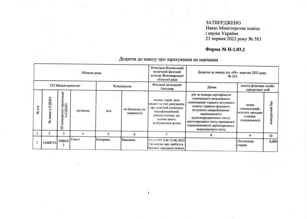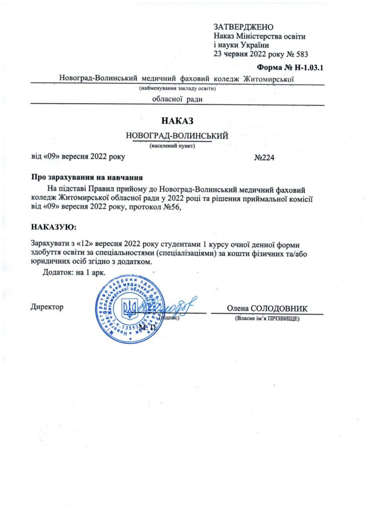 Наказ на зарахування на основі базової загальної середньої освіти за кошти фізичних або юридичних осіб 09.09.2022 Якщо ви знайшли помилку, будь ласка, виділіть фрагмент тексту та натисніть Ctrl+Enter. Share