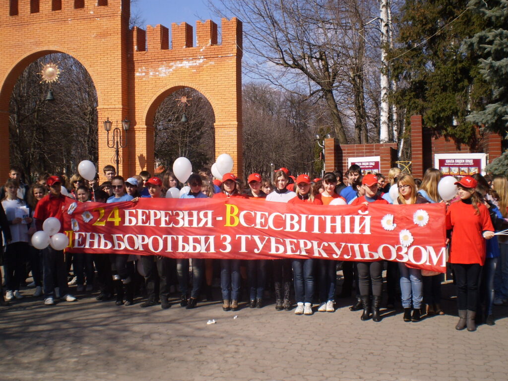 Студенти медичного коледжу протягом тижня провели інформаційно-просвітницьку роботу під гаслом «Зупинимо туберкульоз разом!» серед студентської молоді та населення міста. Волонтери розповсюджували буклети,