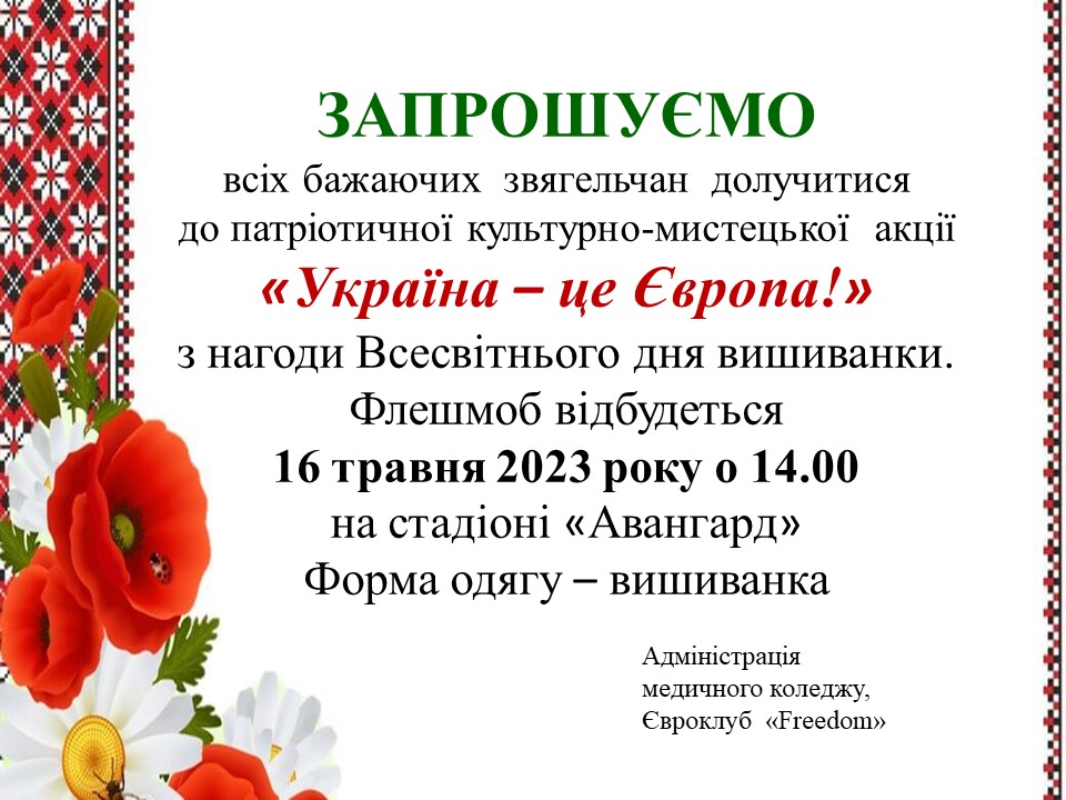 Патріотична культурно-мистецька акція «Україна – це Європа!» 12.05.2023 Якщо ви знайшли помилку, будь ласка, виділіть фрагмент тексту та натисніть Ctrl+Enter. Share
