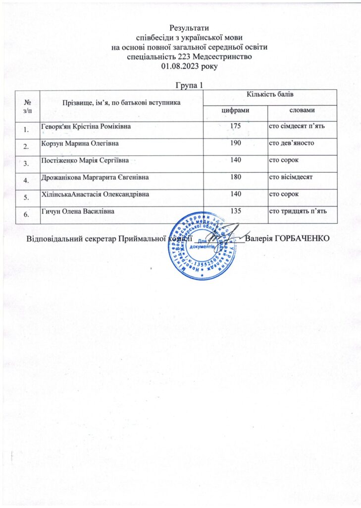 Результати співбесіди з української мови, на основі повної загальної середньої освіти, спеціальність 223 Медсестринство 01.08.2023 Якщо ви знайшли помилку, будь ласка, виділіть фрагмент тексту та натисніть Ctrl+Enter. Share