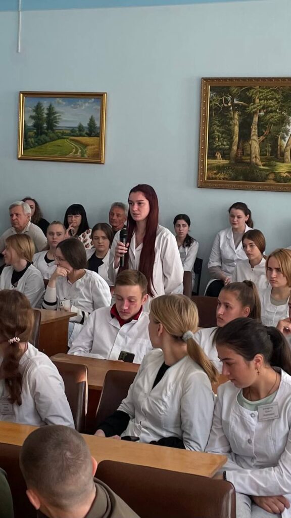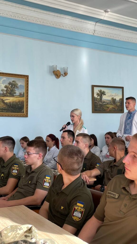 У ході «відкритого мікрофону» студенти та викладачі мали змогу «живого» спілкування з Олександром Нестеренком: ставили запитання, наводили приклади, слухали про життя… «Ніхто не народжений для війни та ніхто не очікував війну в нашій Україні, – зазначив Олександр Володимирович, – але у ворога були інші плани на це». Звернув увагу присутніх на те, що Конституцією України визначено обов’язок захищати Україну, виконувати завдання оборони України, захищати її суверенітет, територіальну цілісність та недоторканність.