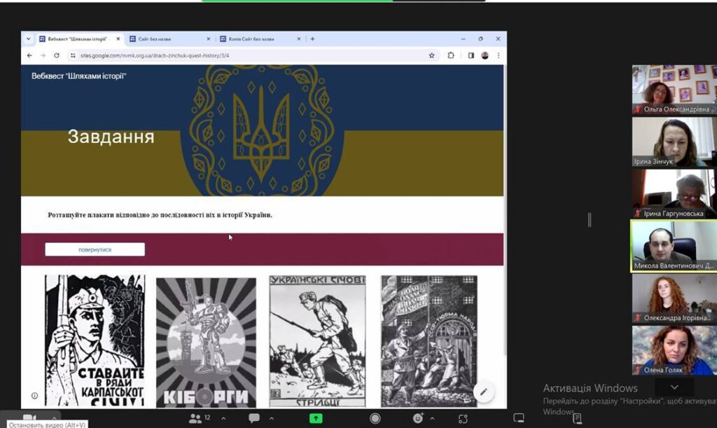 Сьогодні перед педагогами стоїть завдання пошуку нових видів і форм організації навчальної діяльності, яка має розвивати критичне і творче мислення. З цією метою у Коледжі 1 листопада проведено дистанційне засідання методичного об’єднання викладачів української мови та історії України. Під час заходу викладач української мови Галина Котюк презентувала досвід своєї роботи «Формування комунікативної компетентності здобувачів освіти на прикладі воркшопу», а викладачі історії Микола Драч та Ірина Зінчук представили практику використання на заняттях історії України для урізноманітнення освітнього процесу в різних форматах «Особливості використання авторських вебквестів на платформі Google Sites при викладанні історії».