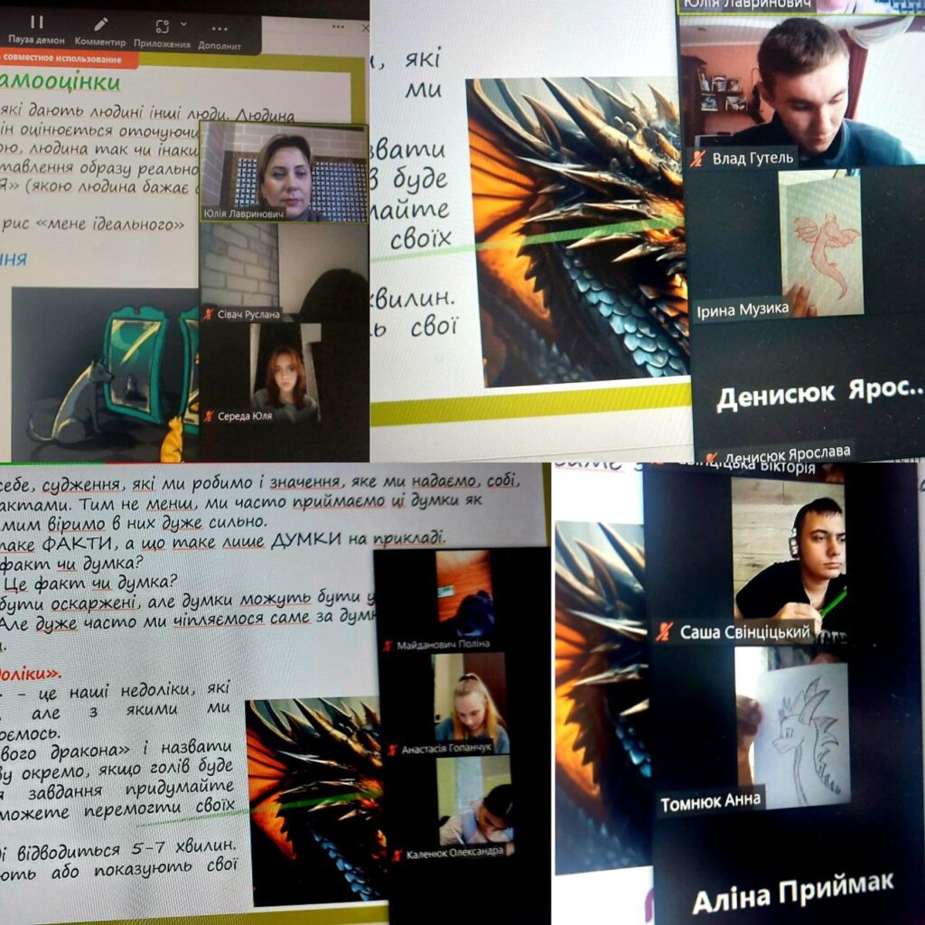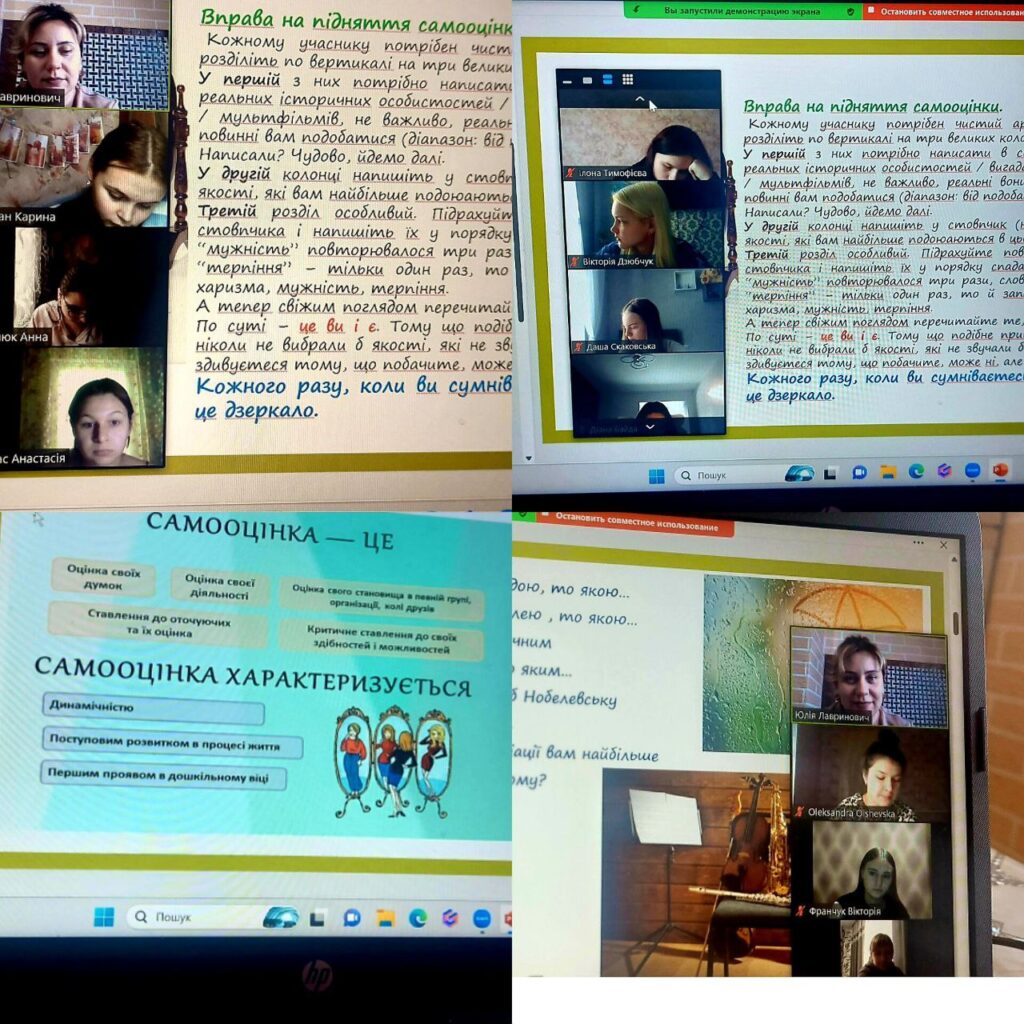 Рівень самооцінки людини впливає на її вчинки. Найчастіше самооцінка особистості буває занижена, тобто реальні можливості людини вище, ніж її уявлення про них. Зазвичай це пов’язано з тим, що формування самооцінки відбувається, в основному, у дитинстві коли можливості людини ще достатньо не розвинені. Крім того, вагомий вплив здійснює негативне оточення, постійна критика. Звичайно ж зустрічаються випадки, особливо у молодого покоління, коли самооцінка є завищеною. А для дорослих людей характерна зворотня ситуація. Про розвиток самооцінки говорили зі студентами I-II курсів. Напрацьовували алгоритми розвитку адекватної самооцінки, ділились досвідом, працювали з елементами арттехнік.