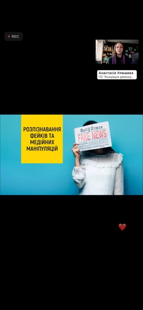 Під час зустрічі студенти ознайомилися з тим як розпізнавати фейки та медійні маніпуляції та як правильно поводитися під час обстрілів.