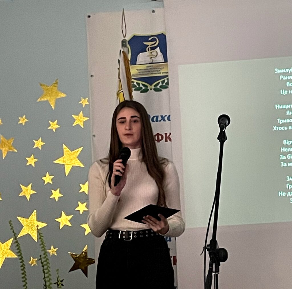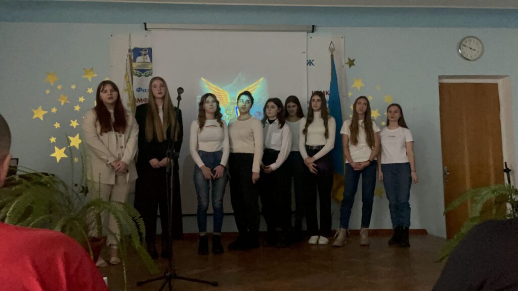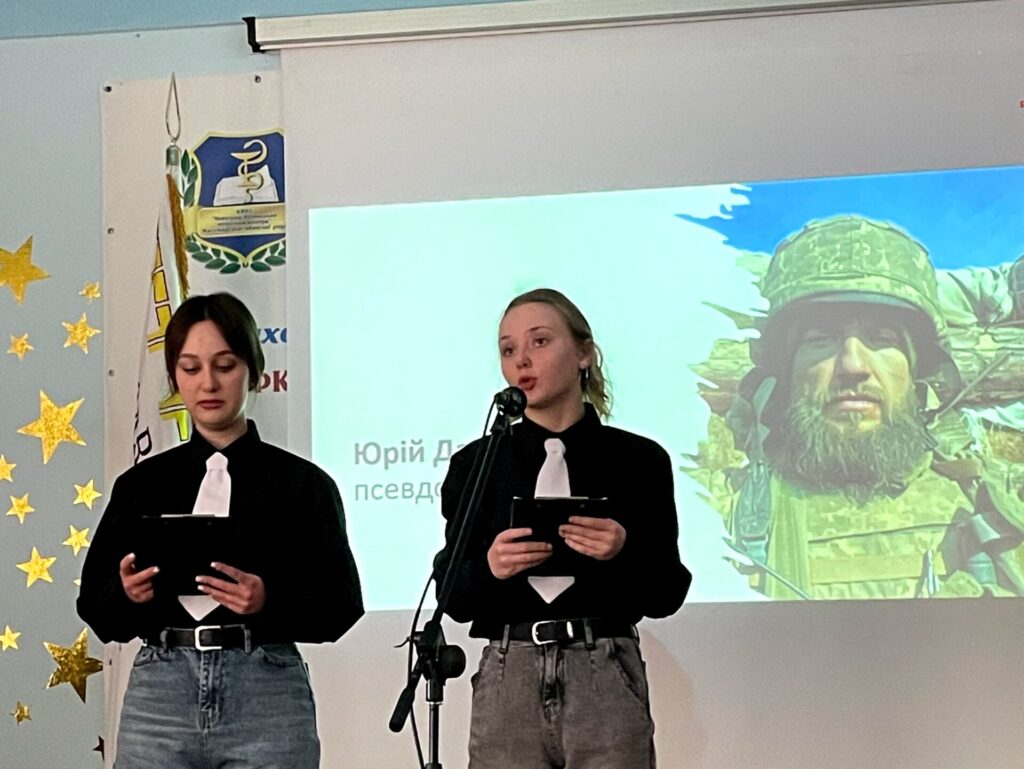 Хвилиною мовчання студенти вшанували подвиг Героїв! Молодь співала патріотичних пісень, читала поезію Юрія Руфа, демонструвала відеоролики про героїчні подвиги українських захисників.