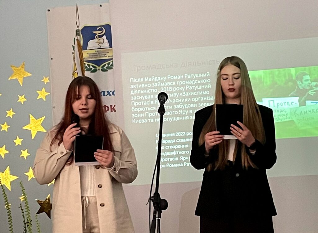 Щодня у боротьбі з ворожими загарбниками Україна втрачає своїх синів. Студенти групи Л46/ІІ та Л47/ІІ продовжили попередню серію розмов про збереження і вшанування пам’яті українських Героїв, чиє життя забрала війна. Виступили з презентацією «Історії незламних: Юрій Руф, Роман Ратушний». Це «історії, які писались кров’ю тих, хто розуміє велич слова Батьківщина». Велика честь знати таких людей, говорити про них, бо це мегалюди, всередині яких горить вогонь, які не сходять з дистанції, не зраджують своїй чіткій позиції, вони роблять те, що відчувають серцем і душею, вони несли в собі Україну і віддали за неї найдорожче – своє життя. Говорили про: Юрія Дадака, поетичне псевдо Юрій Руф, відомого поета, науковця, кандидата наук, громадського діяча та Романа Ратушного, українського громадського діяча, журналіста, військовика-добровольця. Ці хлопці – незламні, суперосвічені, безкомпромісні, саме такі були б потрібні у новій політичній еліті України. Вони варті того, щоб молодь знала і захоплювалася ними.
