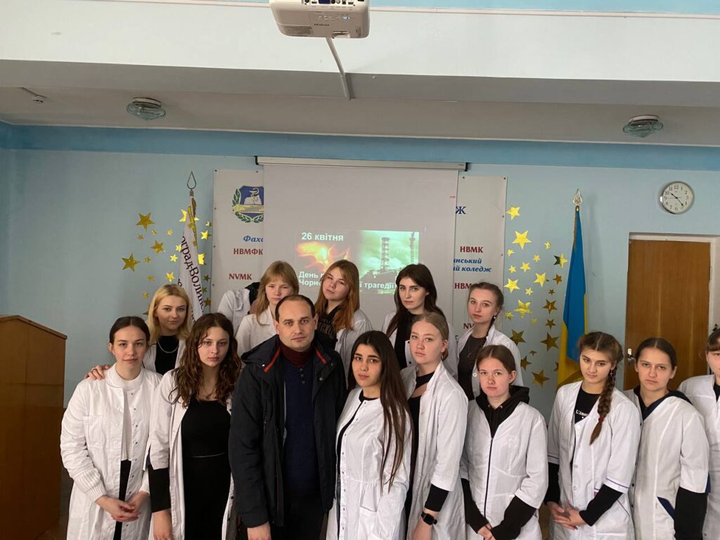 Вшануймо ж полеглих та дякуймо всім причетним до ліквідації наслідків аварії на Чорнобильській АЕС. Особлива вдячність – усім медичним працівникам, які робили все можливе, щоб рятувати людей та викладачам коледжу, безпосереднім учасникам тих страшних подій – Володимиру АКЕНТЬЄВУ та Михайлу ЛІБЕРУ. Наше серце з – вами!
