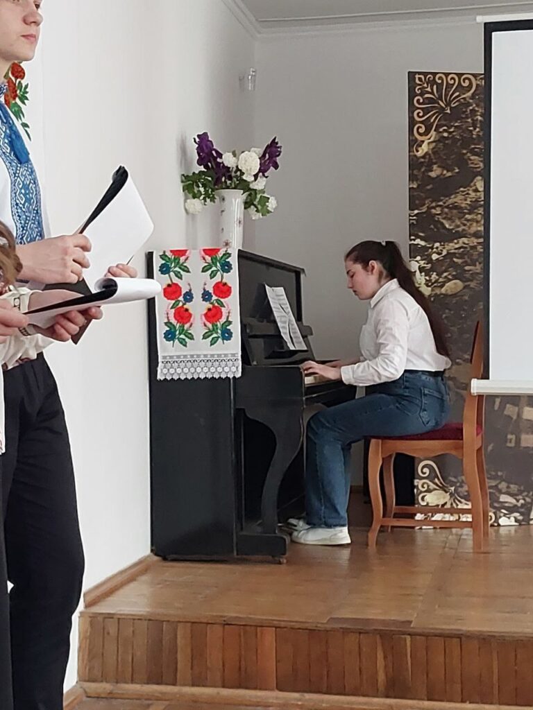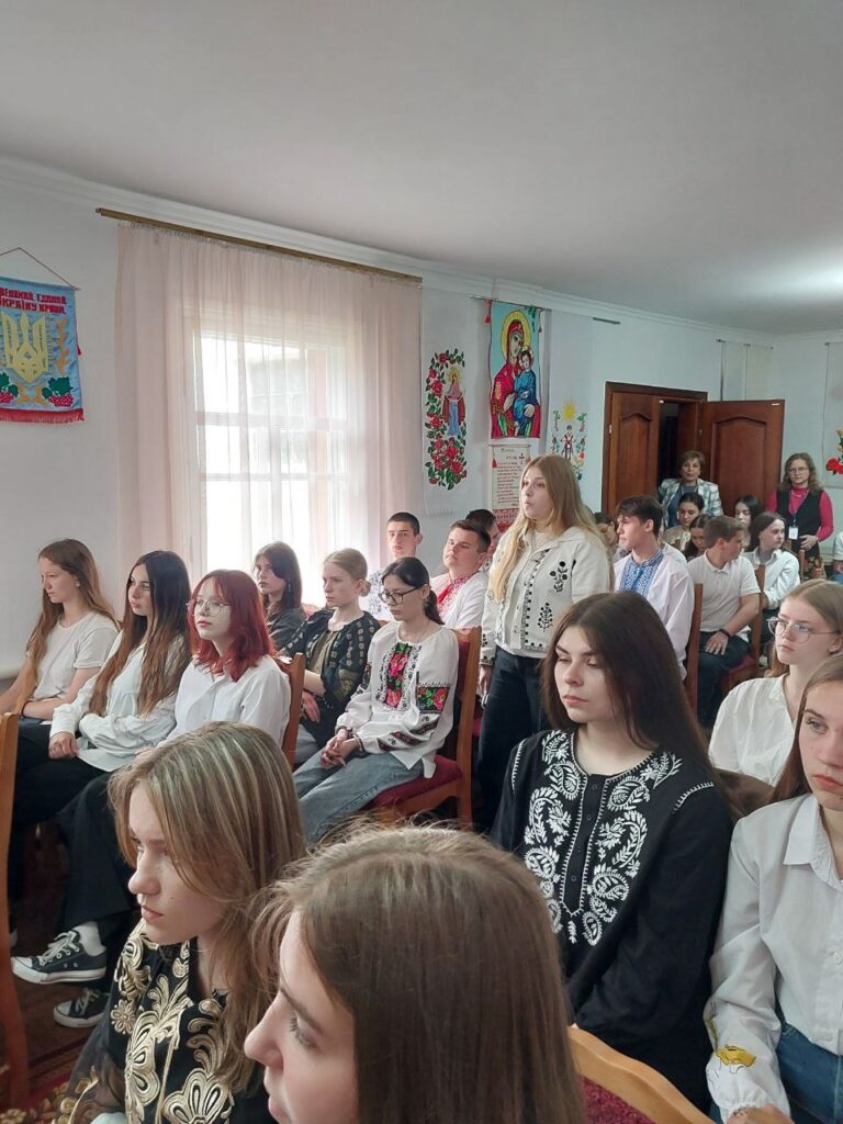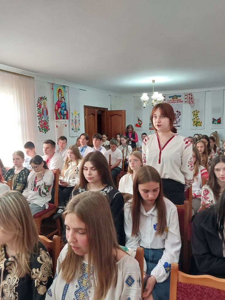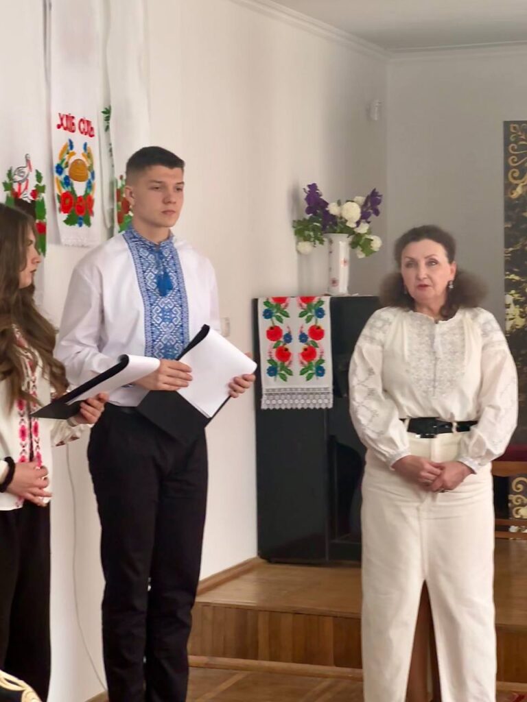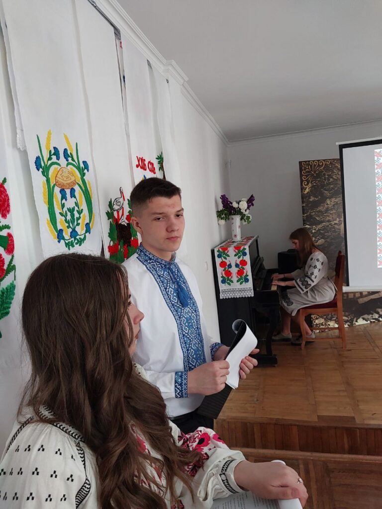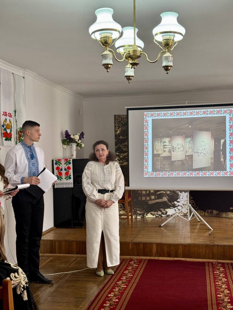 Галина КОТЮК, викладач української мови та літератури, привернула увагу студентів до унікальних робіт нашої землячки – майстрині народної творчості Валентини Муравської, техніка виконання якої – унікальна. Зі смаком та любов’ю підібрані кольори та узори – це сучасне мистецтво, але разом з тим – це доводить, що у нашому краї вишивка продовжує жити, розвиватися і прикрашати своїми оберегами наші оселі, людей і наш край.