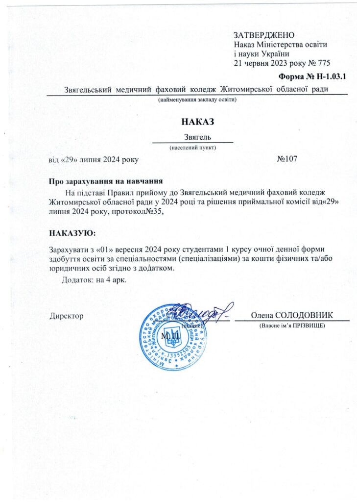 Наказ про зарахування на навчання за кошти фізичних та/або юридичних осіб 29.07.2024 Якщо ви знайшли помилку, будь ласка, виділіть фрагмент тексту та натисніть Ctrl+Enter. Share