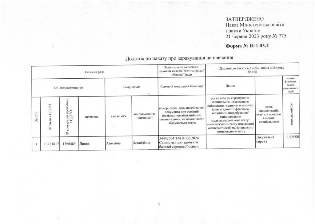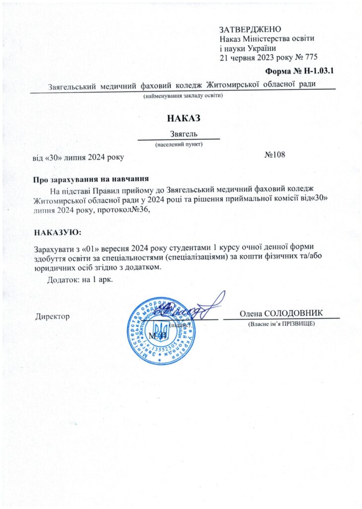 Наказ про зарахування за кошти фізичних та/або юридичних осіб 30.07.2024 Якщо ви знайшли помилку, будь ласка, виділіть фрагмент тексту та натисніть Ctrl+Enter. Share