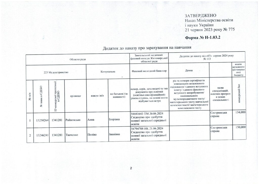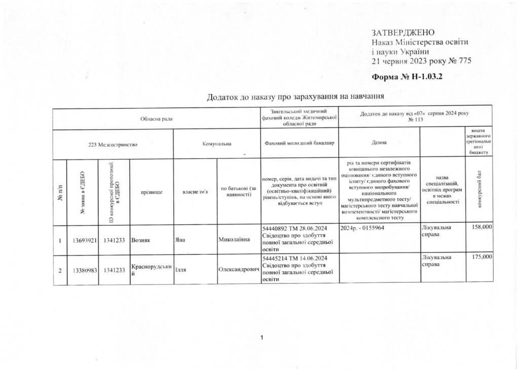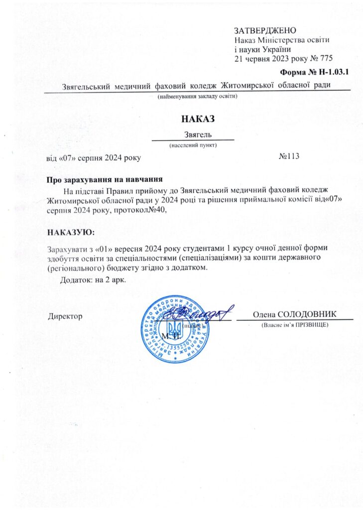 Наказ про зарахування на навчання за кошти регіонального замовлення 07.08.2024 Якщо ви знайшли помилку, будь ласка, виділіть фрагмент тексту та натисніть Ctrl+Enter. Share