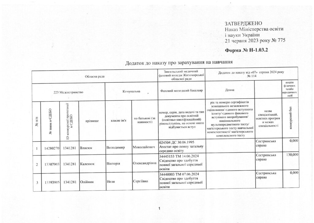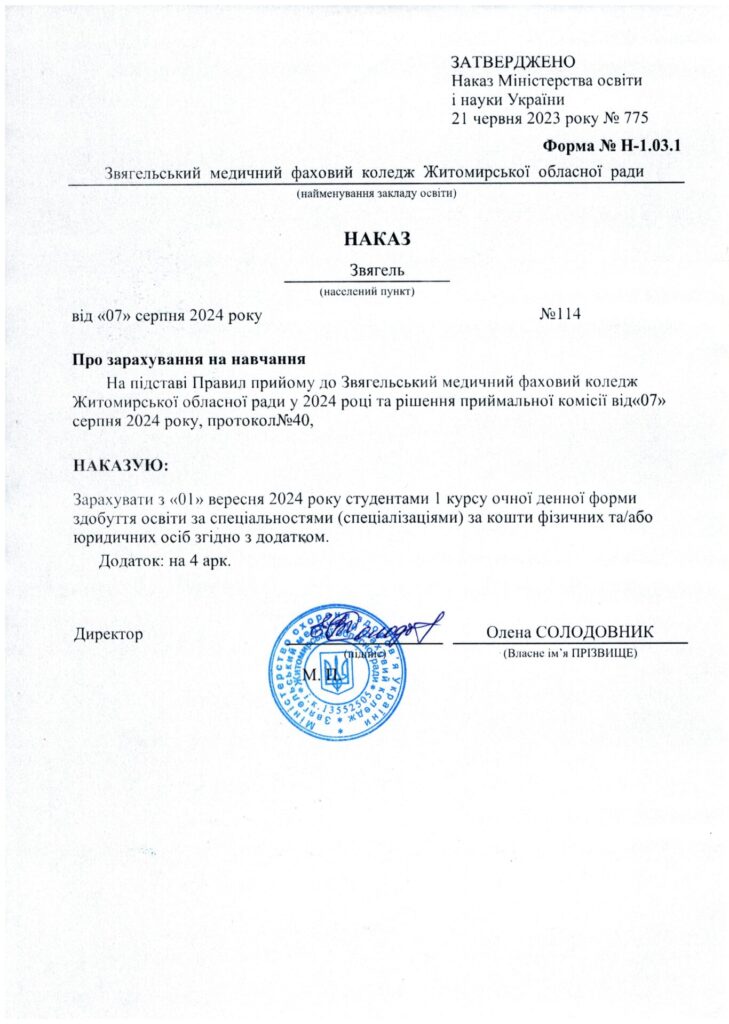 Наказ про зарахування на навчання за кошти фізичних та/або юридичних осіб 07.08.2024 Якщо ви знайшли помилку, будь ласка, виділіть фрагмент тексту та натисніть Ctrl+Enter. Share