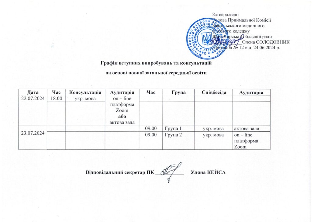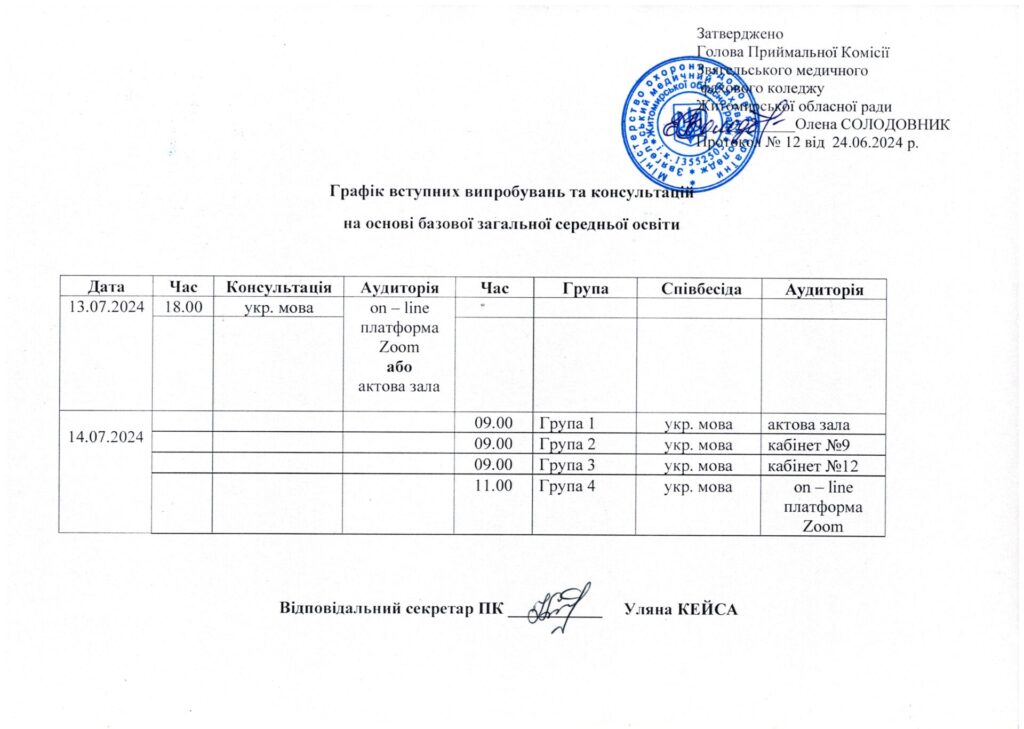 Графік вступних випробувань та консультацій 26.06.2024 Якщо ви знайшли помилку, будь ласка, виділіть фрагмент тексту та натисніть Ctrl+Enter. Share