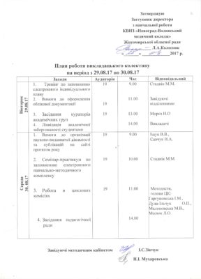 План роботи педагогічного колективу на 29-30 серпня 2017 р. 25.08.2017 Якщо ви знайшли помилку, будь ласка, виділіть фрагмент тексту та натисніть Ctrl+Enter. Share