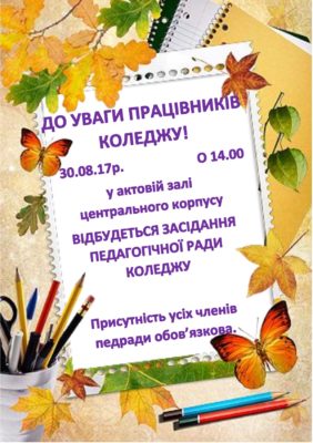 ЗАСІДАННЯ ПЕДАГОГІЧНОЇ РАДИ 25.08.2017 Якщо ви знайшли помилку, будь ласка, виділіть фрагмент тексту та натисніть Ctrl+Enter. Share
