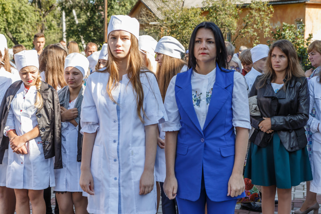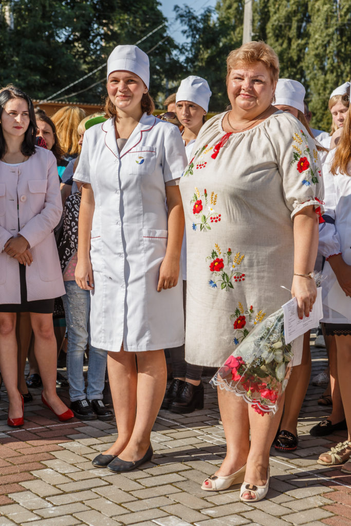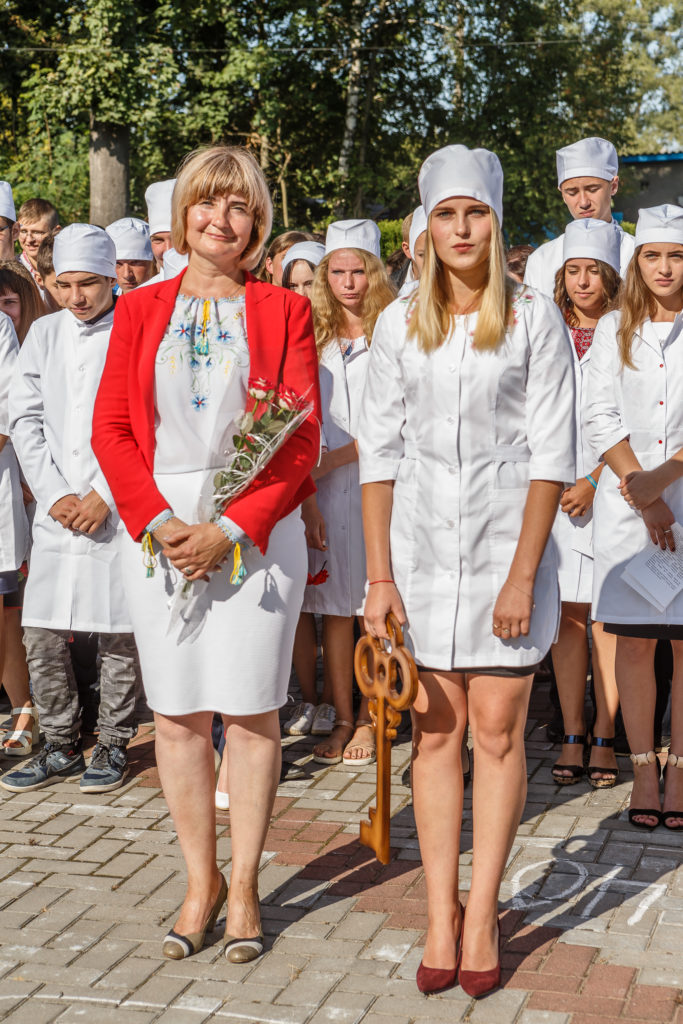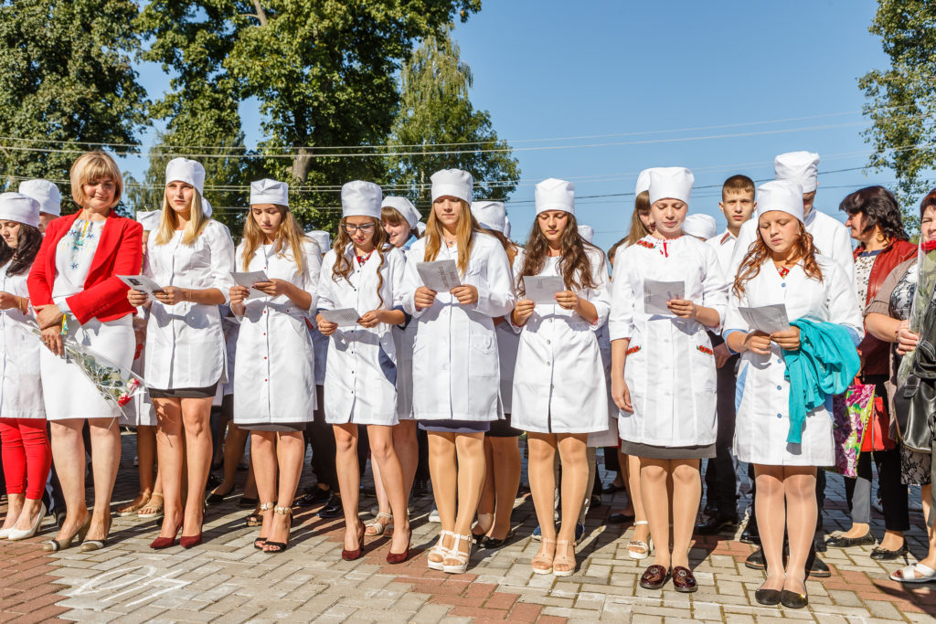 День Знань – свято початку нового навчального року. Цей день завжди особливо урочистий і хвилюючий, адже саме з нього починається незвіданий, цікавий і, водночас, нелегкий шлях до пізнання, до нових звершень, до самостійного життя. Доброю традицією у нашому коледжі є зустріч початку нового навчального року як радісне свято. Подвір’я навчального закладу виглядало особливо святково від білосніжних халатів, які одягли студенти на урочисту лінійку.