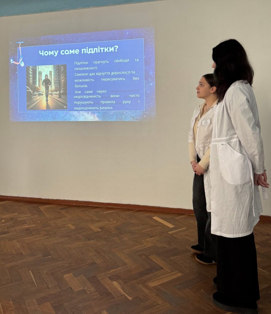Участь студентів у тематичних виховних заходах, тренінгах, їх активна позиція, молодіжні ініціативи привертають увагу до проблем безпеки, формують культуру взаємоповаги між усіма учасниками дорожнього руху. Так як підлітки часто схильні до ризикованої поведінки, переоцінки своїх можливостей, ігнорування правил безпеки, необхідно з ними про це говорити, проводити профілактичні заходи. Високу активність у проведенні заходу проявили і самі студенти коледжу. Турко Карина та Назарчук Анастасія, студенти групи Л52/ІІ, підготували презентацію на тему «Електросамокати і підлітки: нові виклики». Студент групи Л51/ІІ Деркач Нікіта демонстрував цікаві відеоматеріали «Безпечна поведінка на вулиці та у транспорті», переконливо доводячи правила, що захищають наше життя, зберігають здоров’я молоді.