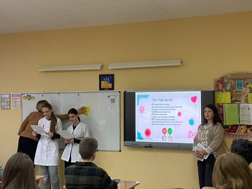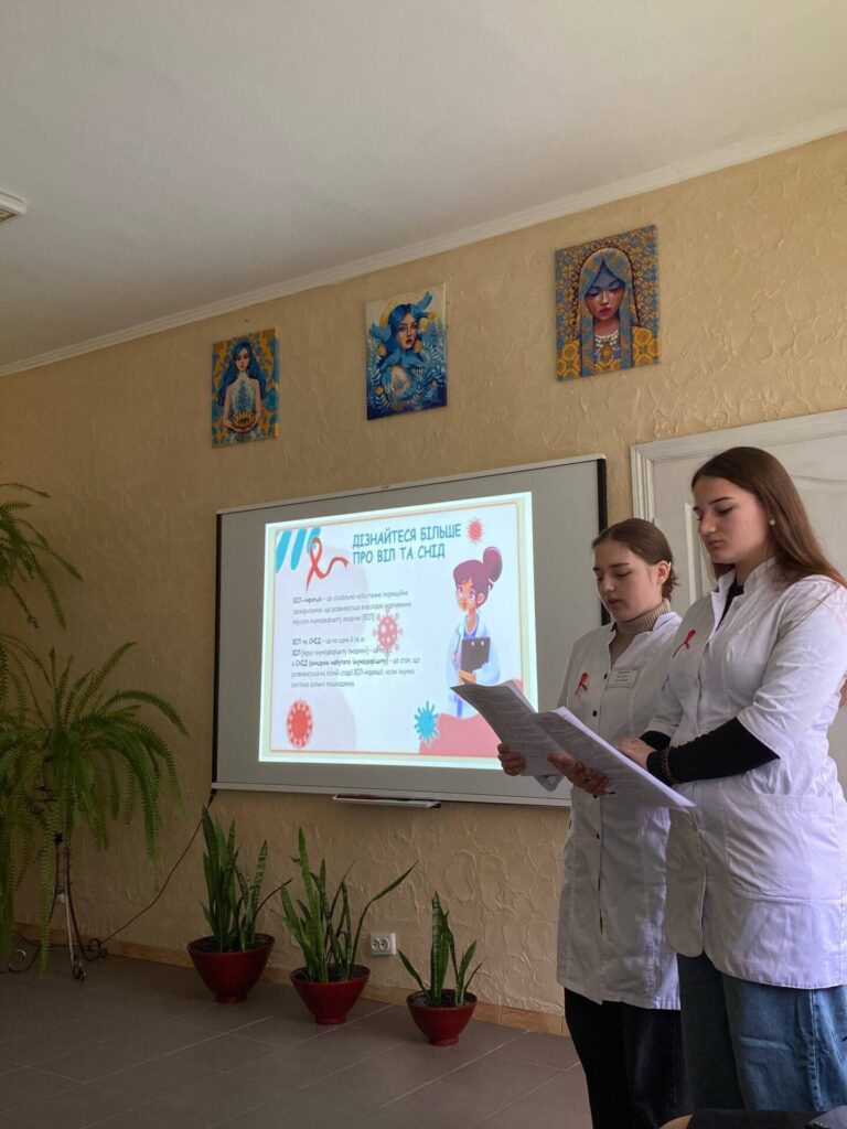 Студентами 2-го та 3-го курсів під керівництвом викладачів ( Зайченко І.С., Романюк О.М., Михайлишиної Д.М., Баликіної І.Д., Гутель О.В., Самченко Ю.А., Шубіної С.В., Мороз Н.О., Зінчук І.С.) проведено санітарно-просвітницьку роботу в інших навчальних закладах, було проговорено про актуальність цієї теми, шляхи передачі, лікування та профілактику.