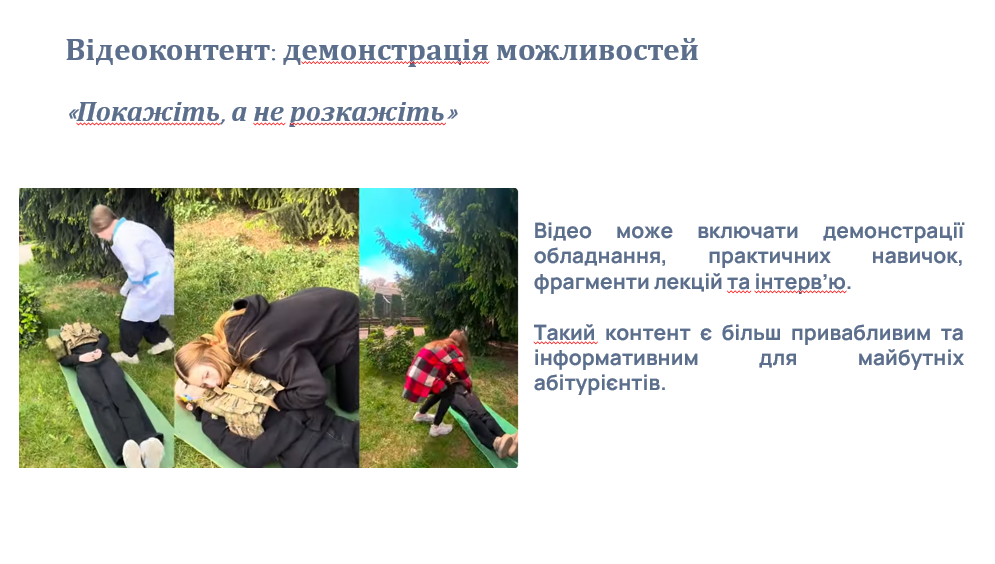 Профорієнтація через позитивний імідж коледжу в цифровому просторі – Наталія Мухаровська, заступник директора з гуманітарної освіти і виховання, представила оновлене бачення профорієнтаційної роботи. Наголошено, що конкуренція між закладами освіти зростає, а тому важливо не лише інформувати майбутніх абітурієнтів, а й формувати сучасний, привабливий та достовірний імідж коледжу у цифровому середовищі. Серед пріоритетів – активне використання соціальних мереж, створення якісного візуального контенту, залучення студентів до інформаційних кампаній та розвиток цифрової екосистеми комунікацій.