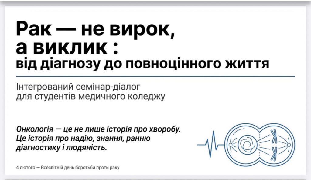 До Всесвітнього дня боротьби проти раку у нашому закладі було проведено інтегрований семінар-дискусія «Рак – не вирок, а виклик: від діагнозу до повноцінного життя».
