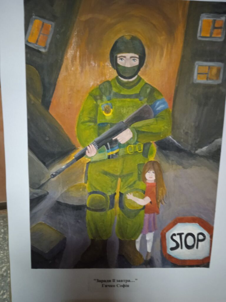 Ми пишаємося своєю студенткою, яка фарбами та пензлем відобразила своє ставлення до нашого спільного горя та до наших героїв. Дякуємо тобі, Софіє, за те, що ти така є, що вмієш передати те, що усі ми відчуваємо і переживаємо уже чотири роки поспіль.