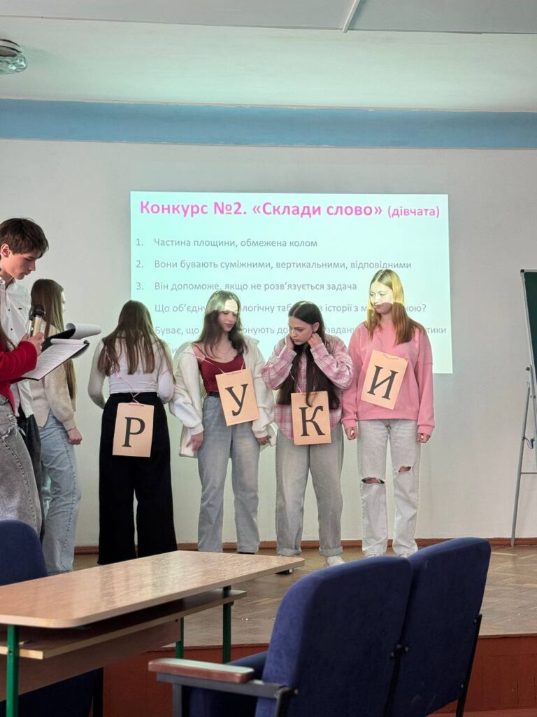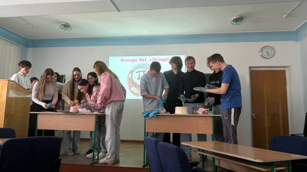 Розпочалося змагання кулінарним конкурсом «Пі-пиріг», у якому команди повинні були за обмежений час прикрасити круглий пиріг цифрами числа π. Учасники продемонстрували не лише кмітливість, а й творчий підхід. Далі команди брали участь у конкурсі «Склади слово», де необхідно було швидко формувати слова з літер, відповідаючи на запитання з різних галузей знань. У конкурсі «Спільний початок» студенти пригадували слова, що починаються зі складу «пі», а під час завдання «Вгадай на дотик» визначали геометричні тіла лише за допомогою дотику. Особливо цікавим став конкурс «Запам’ятай!», де команди намагалися запам’ятати якомога більше цифр числа π за одну хвилину та правильно їх відтворити. У конкурсі «Формули» студенти пригадували математичні формули, що містять число π. Веселу атмосферу в залі створив конкурс «Чоловік чи жінка?», під час якого учасники мали швидко визначати рід слів, одночасно виконуючи фізичні вправи. Це завдання вимагало не лише знань, а й витривалості. Учасники також продемонстрували свої творчі здібності в конкурсі «Домашнє завдання», представивши відеоролики на тему «Навіщо нам математика?». Відео викликали жвавий інтерес та оплески глядачів. У фінальному конкурсі студенти повинні були за допомогою шприців перенести фізіологічний розчин. Завдання вимагало швидкості, командної роботи та точності. До участі у заході були залучені й глядачі: вони проходили онлайн-тестування за QR-кодом і могли принести додатковий бал своїй команді.