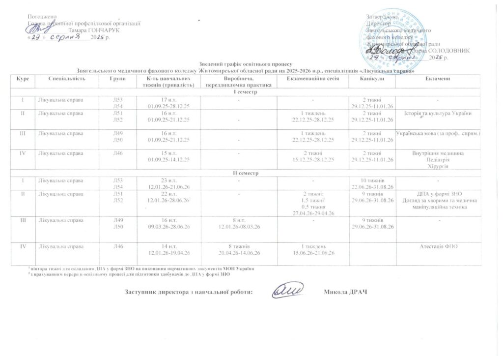 Зведений графік освітнього процесу на 2025-2026 н.р., спеціалізація «Лікувальна справа» 29.08.2025 Якщо ви знайшли помилку, будь ласка, виділіть фрагмент тексту та натисніть Ctrl+Enter. Share
