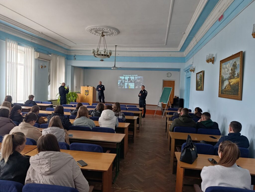 У ході зустрічі гості надали студентам інформацію про можливості навчання у Академії патрульної поліції, подальше працевлаштування до правоохоронних органів, рівень грошового та соціального забезпечення.