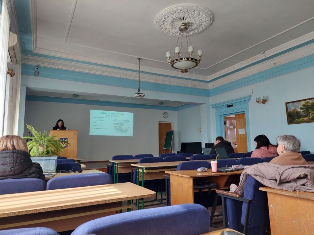 Викладач Тамара ГОНЧАРУК поділилася практичним досвідом участі в роботі журі ІІ (обласного) етапу Всеукраїнського конкурсу-захисту науково-дослідницьких робіт МАН України. Присутні ознайомилися з умовами, вимогами, етапами конкурсу та особливостями проведення та оцінювання робіт учасників.