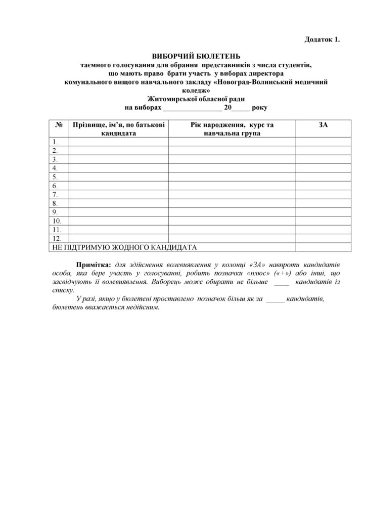 ПОЛОЖЕННЯ про порядок обрання виборних представників з числа студентів, що мають право брати участь у виборах директора КВНЗ «Новоград-Волинський медичний коледж» Житомирської обласної ради