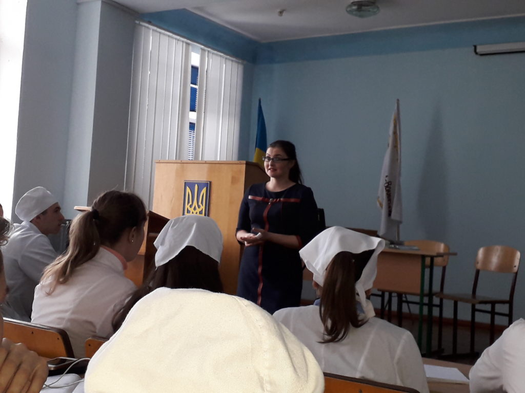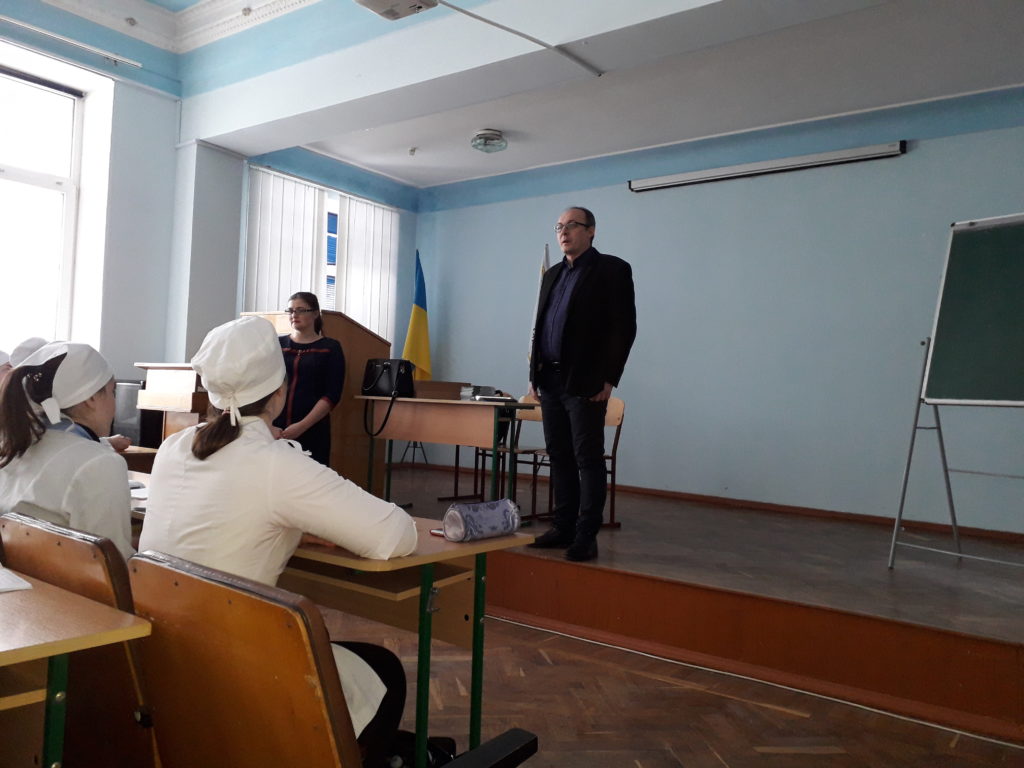 12.02.18р. студенти випускних груп мали нагоду познайомитися з системою отримання освіти в Старопольському університеті в Кєльцях (Польща), який є партнером міжнародного фонду підтримки України. Викладачі польського університету спеціально завітали до Новоград-Волинського медичного коледжу, щоб запросити студентів продовжити навчання на відділі медсестринства (профіль практичний І ст. бакалавр). Змістовно розповіли присутнім про якість польської освіти, яка передбачає отримання європейського диплома та фахове працевлаштування в країнах ЄС, систему оплати за навчання та можливість отримувати стипендію по програмі ERASMUS. Через укладені угоди з роботодавцями міста Кєльцях, університет допомагає українським студентам під час навчання працевлаштуватися, щоб самостійно заробити кошти на оплату навчання, проживання в гуртожитку та інше. А ще, кожен студент проходить безкоштовно інтенсивний курс вивчення польської мови. На завершення зустрічі викладачі надали відповіді на ряд запитань від студентів та роздали кожному присутньому в залі інформаційні буклети.