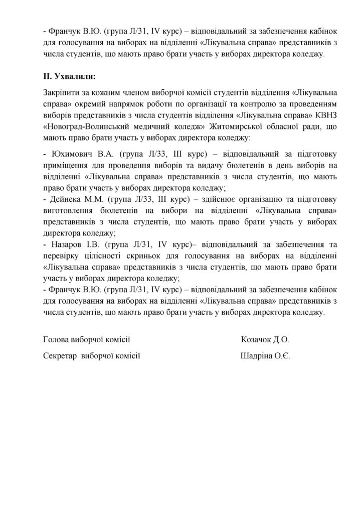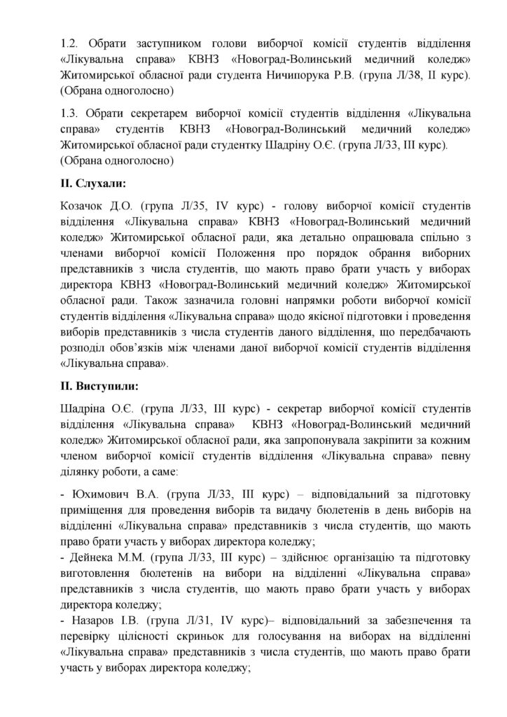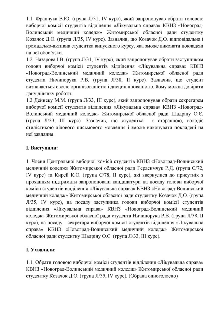 0 Протокол № 3 засідання виборчої комісії студентів відділення «Лікувальна справа» КВНЗ «Новоград-Волинський медичний коледж» Житомирської обласної ради 28.03.2018