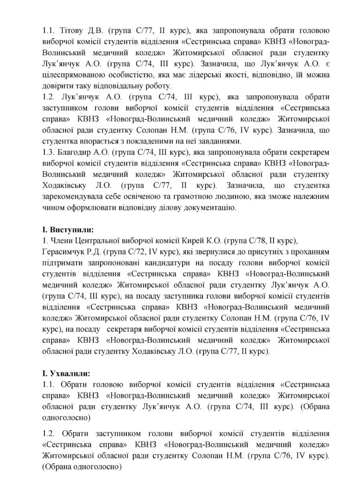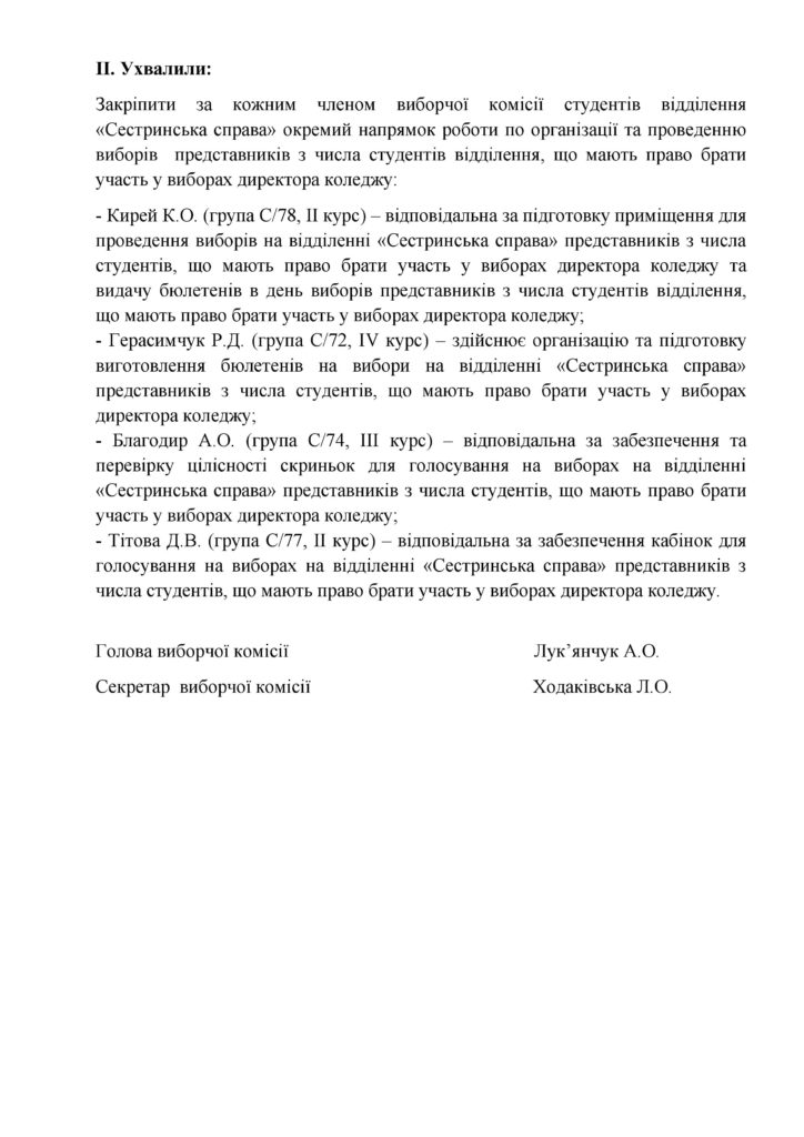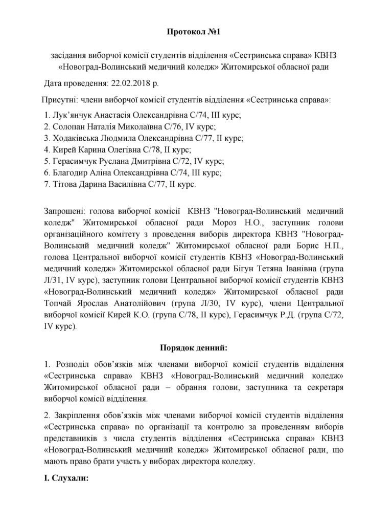 Протокол засідання виборчої комісії студентів відділення “Сестринська справа” 26.02.2018 Якщо ви знайшли помилку, будь ласка, виділіть фрагмент тексту та натисніть Ctrl+Enter. Share