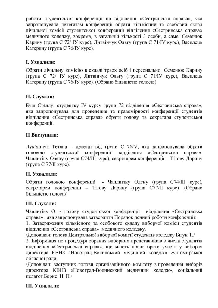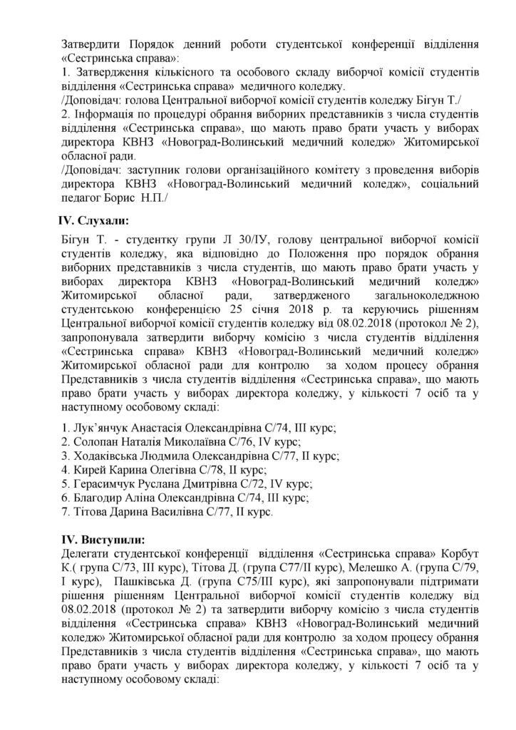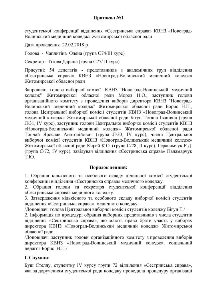 0 Протокол №1 засідання Центральної виборчої комісії студентів КВНЗ “Новоград-Волинський медичний коледж” 21.02.2018