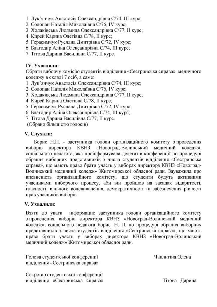 0 Протокол №4 виборчої комісії КВНЗ “Новоград-Волинський медичний коледж” за результатами підрахунку голосів 06.04.2018