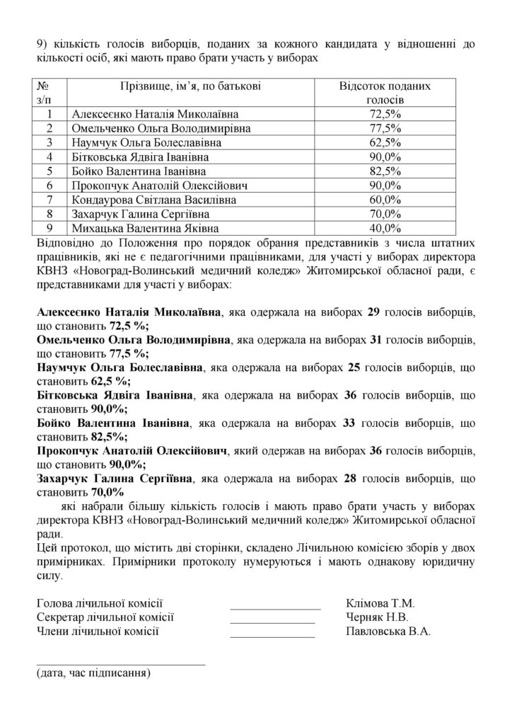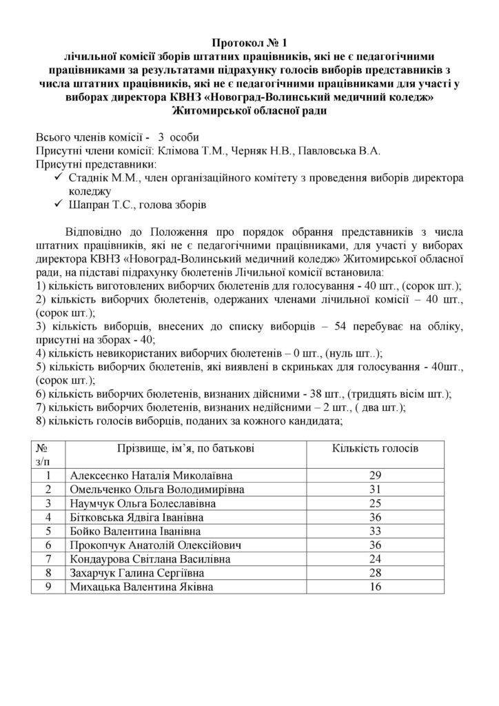 Протокол лічильної комісії зборів штатних працівників, які не є педагогічними працівниками за результатами підрахунку голосів виборів представників з числа штатних працівників, які не є педагогічними працівниками для участі у виборах директора
