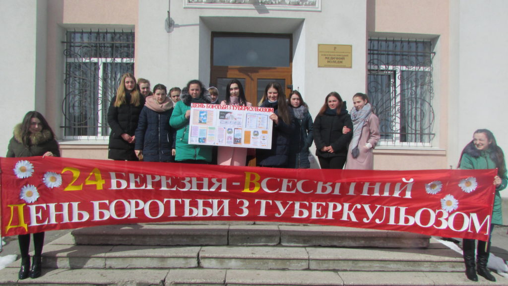 У цей день студенти коледжу не залишилися осторонь цієї проблеми та провели санітарно-просвітницьку роботу серед населення міста під гаслом «Зупинимо туберкульоз разом!». Студенти відвідали місцеві школи та продемонстрували відеоматеріали, розповсюдили буклети з корисною інформацією, а також пригощали усіх присутніх вітаміном «С».