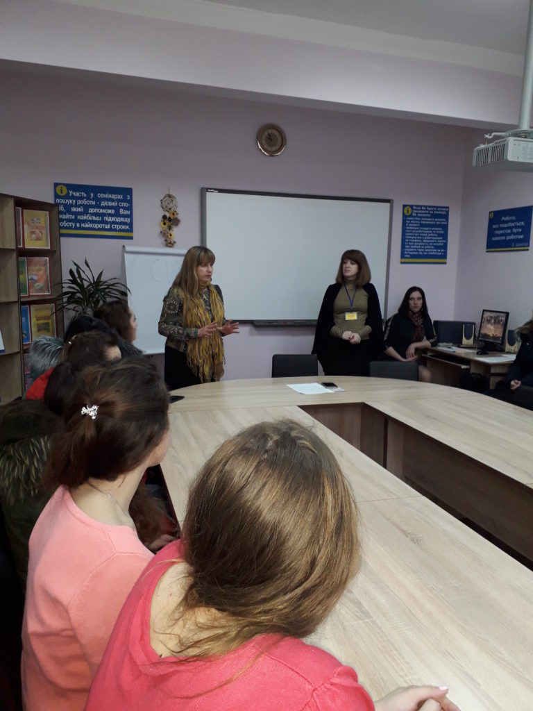 В рамках співпраці медичного коледжу з міським центром зайнятості, студенти випускних груп відділення «Лікувальна справа» та «Сестринська справа» відвідали установу, де отримали змістовну інформацію на ряд значущих соціальних питань для подальшого життя молодих людей. Інтегратор Новоград-Волинського місцевого центру з надання безоплатної вторинної правової допомоги Колесник І.М. розповіла студентам які види юридичних послуг можна отримати безкоштовно в центрі, про професійну діяльність юристів, спрямовану на сприяння громадянам та юридичним особам у вирішенні питань, пов’язаних із реалізацією норм права, що виявляється у наданні правових (юридичних) послуг. Така мережа із близько 550 офісів безоплатної правової допомоги діє у всіх регіонах України. Головний спеціаліст міського центру соціальних служб для сім’ї, дітей та молоді Харченко Л.С. проінформувала присутніх студентів, як не стати жертвою торгівлі людьми. Адже в Україні почастішали випадки торгівлі людьми та рабства, трудової експлуатації, особливо, коли людина виїздить для отримання заробітку за кордон. Зупинилася на одній з форм експлуатації – жебрацтву, коли люди випрошують гроші на вулицях, а потім передають «зароблене» своїм кураторам і отримують відсоток. Головний спеціаліст міського центру зайнятості Ящук Л.В. провела практичне заняття для студентів про правила складання резюме, як його заповнювати, що можна додатково додавати, як гарантію свого працевлаштування. В цілому, зустрічі відбувалися в доброзичливій атмосфері, кожен студент отримав інформаційні буклети та листівки.
