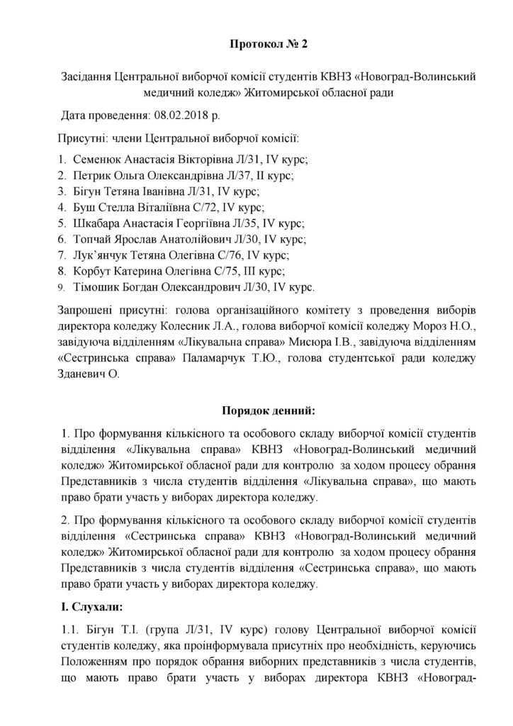Протокол №2 засідання Центральної виборчої комісії студентів КВНЗ «Новоград-Волинський медичний коледж» 27.03.2018 Якщо ви знайшли помилку, будь ласка, виділіть фрагмент тексту та натисніть Ctrl+Enter. Share