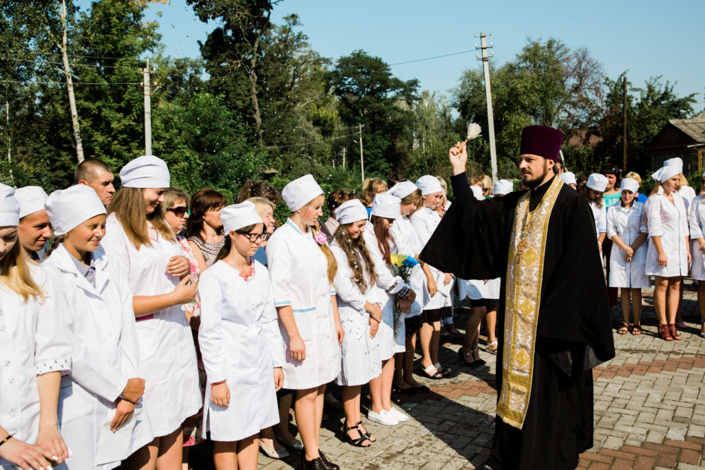 Протоієрей Української Православної Церкви Петро благословив усіх студентів та викладачів на мирний, успішний навчальний рік, освятив усіх присутніх святою водою, побажав миру, добра, злагоди і милосердя.